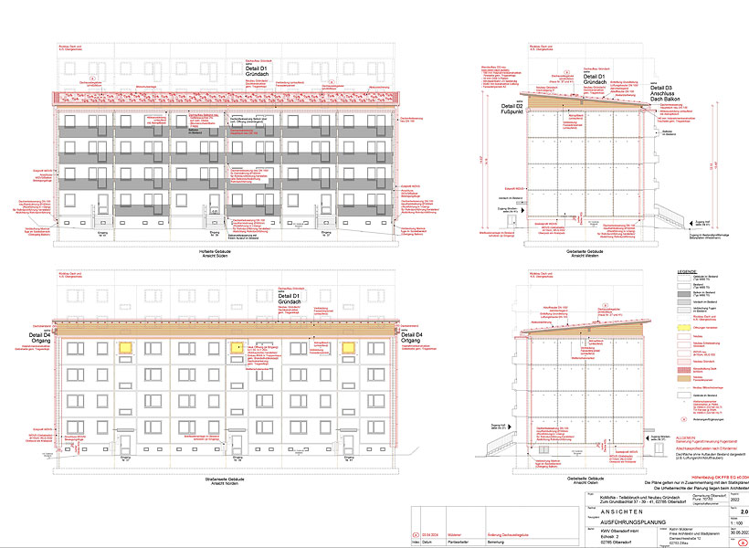 - Geschossrückbau und Neubau eines extensiven Gründaches im Rahmen des Förderprogramms KoMoNa „Gründächer für die Grundbachsiedlung – Klimaanpassung und Energieeffizienz durch nachhaltige ökologische Infrastruktur“
